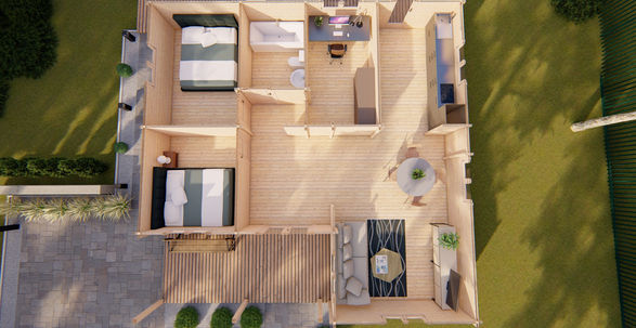 Bârne masive de 68 mm grosime din lemn natural de molid nordic